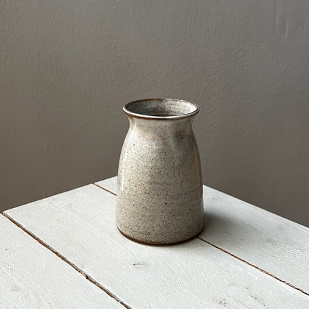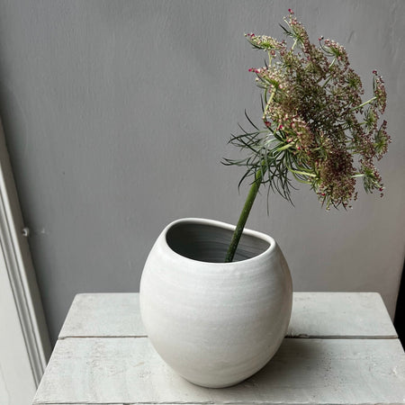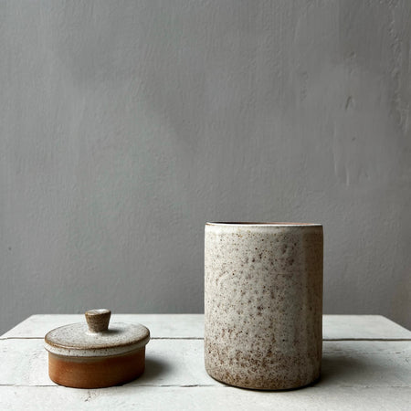 Mycket av det vi gör är modernt bruksgods i genomtänkt funktionell form. Vi arbetar med högt brända stengodsleror och våra glasyrer har vi experimenterat fram i en naturlig färgskala, där allt är vackert att kombinera med varandra. Lika mycket som vi älskar det finstämda tycker vi om att lyfta in något som bryter av och gör att det skaver lite.