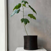 En handdrejad kruka i svart chamotterad lera, dvs en lera som vi blandat bränd krossad lera i för att göra den “ruffare”. Vi tycker att den svarta leran passar så fint till gröna växter. Det här är en ytterkruka och alltså inte menad att plantera direkt i.