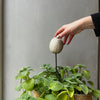 A handcrafted stoneware item shaped like a seed pod and designed to be mounted on a slender wooden or metal rod (not included). This object gently enhances both indoor plant pots and outdoor plantings.